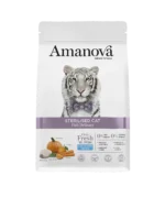 Amanova Sterilized Cat Delicacy es una receta exclusiva de comida natural para gatos esterilizados, sin harinas de carne ni carnes deshidratadas, contiene minerales, fibras dietéticas e ingredientes especiales como psyllium, probióticos, quinoa y aceite de pescado que ayudarán a mejorar la función renal, la digestión y prevenir la formación de bolas de pelos.