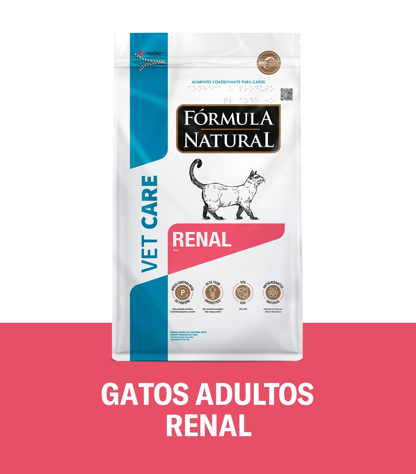 Fórmula Natural Vet Care Renal Gatos es un alimento de apoyo que tiene como objetivo auxiliar a reducir la progresión de la enfermedad renal crónica y mejorar la calidad de vida de los gatos que padecen de estar enfermedad.