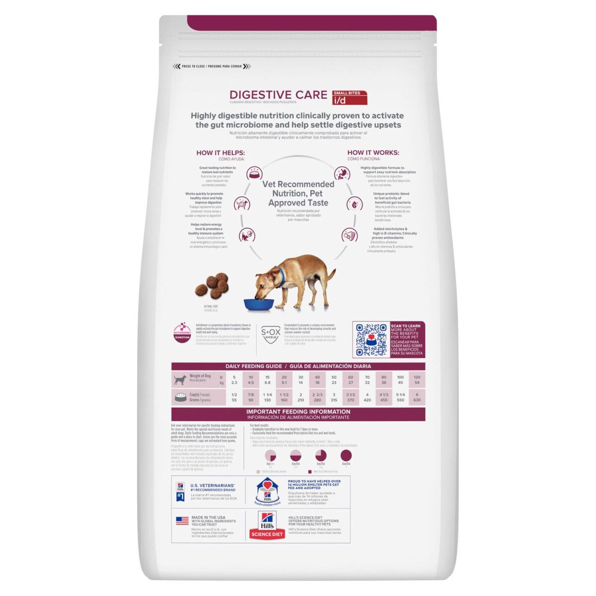 Hill’s Prescription Diet i/d Small Bites es nutrición altamente digerible y de gran sabor para perros pequeños que ha demostrado clínicamente que ayuda a calmar los trastornos digestivos. Fortificado con la tecnología de ingredientes ActivBiome+ patentada de Hill’s que ha demostrado clínicamente que activa rápidamente el microbioma intestinal para respaldar la salud y el bienestar digestivos.